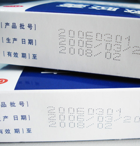 小字符喷码机在制药行业的应用: · 符合 FDA 标准的可食用油墨,符合医药行业对包装卫生的要求。 · 全密封式设计,使周围环境干净环保。 · 多种机型,喷印字符范围0.8mm-18mm,1至八行信息喷印,可使用医药行业的要求。 · 自动显示产品计数、批号、班号等实时信息。 · 正序、倒序、反向、倒转等四种方向可调节喷印功能。 · 可打印多行信息,喷印速度可达1076 字符/秒,根据需要编辑喷印信息的内容等功能。 · 可控制墨水浪费的同时会让您的操作更加轻松。 · 可在纸箱或托盘的两侧喷印信息。 · 移动灵活便捷,适合在纸箱、编织袋或塑料薄膜上喷印。 · 可打印单行16点信息或者两行7点信息,连续喷印,功能齐全。